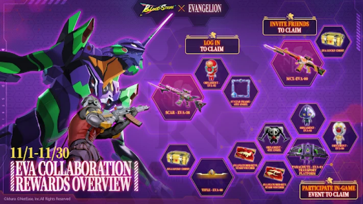 Be a part of the limited-time collaboration occasion that includes iconic EVA Angels—4th and sixth Angels seem on the map. Defeat them to say unique rewards! Take part from November 1st to thirtieth to earn particular EVA skins and occasion objects. (Word: Occasion seen solely in choose areas)