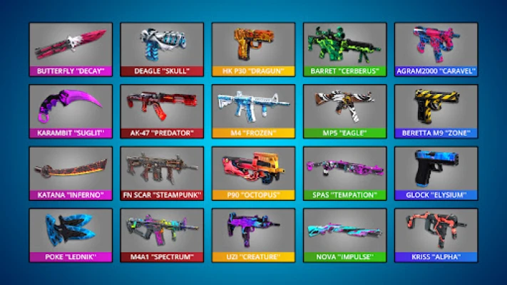 Weapon customization — The more you play with the gun, the more additional modules will be available to you! Use scopes, silencers, skins, trinkets and more to customize your weapons and make them suit your playstyle.