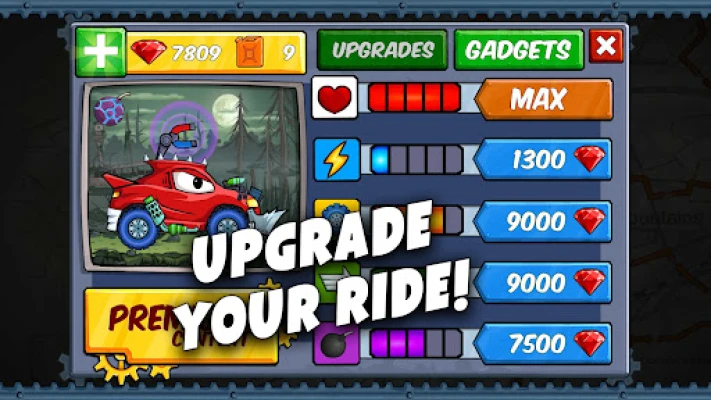 Turn your truck into a unique monster car, capable of developing incredible speed. Do you want to climb to the top of the leaderboard? Upgrade the truck with various power-ups and boosts: increase its speed, traction, stability, nitro, and protect the body of the car! Enter turbo mode often, perform dangerous tricks, make turns, take off, fly up in the air and earn coins for the first-rate upgrade of your auto monster!