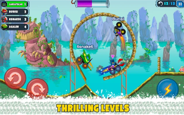 Participate in survival real-time races with Beetlee, Locomachina, Gator, Smarty and other offroad legends that can be yours! Help your cars escape from the main villain, Carzilla! You can do it!