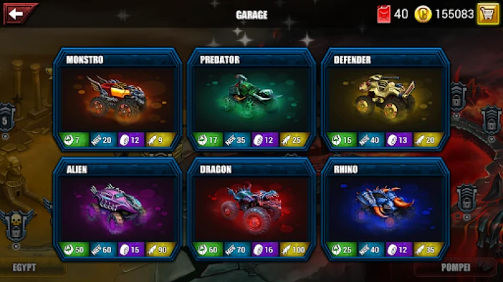 Mad Truck Challenge includes 72+ levels of various missions, where the battle of cars against different bosses takes place! You’ll drive around 6 uphill locations, where your opponents are fantastic creatures: pharaohs in ancient Egypt, devils in Pompeii, Vikings in winter land, vampires in Transylvania, aliens in Nemesis, and zombies in the Necropolis! Race simulator game!