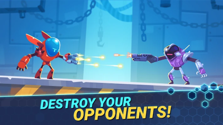 Robo Wars: Robot Battle Mechs is a one of the robot fighting games full of shooting robots and explosions, traps, crates, and boosts! Hide behind the platforms, interact with objects on the arena and learn how to use the traps and boosts in your favor.