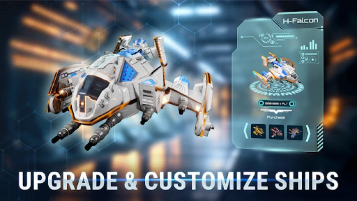 Get the ship you like, equip it with the latest technology. Each ship has two configurations - you can assemble each one for your tasks! For example: for waging war and for maximum speed, or you can assemble a hybrid from many different parts!